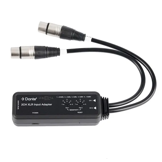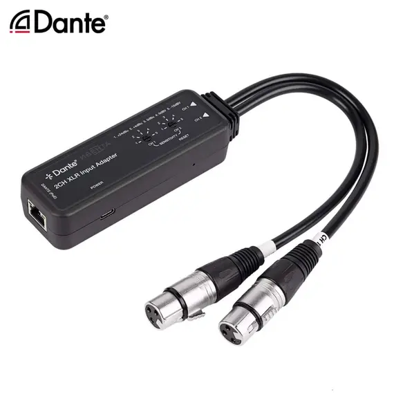 Двухканальный XLR входной адаптер с поддержкой Dante. Преобразует двухканальный балансный/небалансный аналоговый аудиосигнал XLR в двухканальный цифровой аудиосигнал Dante, а затем передает аудиосигнал на принимающую сторону через сеть Dante. Поддерживает локальное питание через порт USB-C и функцию PoE.