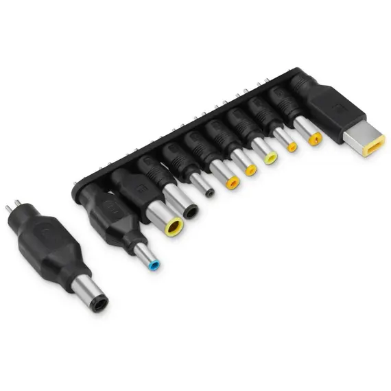 Описание Универсальный сетевой адаптер для ноутбуков мощностью 90 ватт. В комплекте входят 11 сменных штекеров, подходящих к большинству ноутбуков. Выбор мощности для питания происходит в ручном режиме.