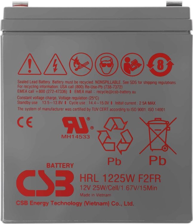 Аккумуляторная батарея CSB 12 В, 25 Вт (CSB HRL1225W F2 FR)