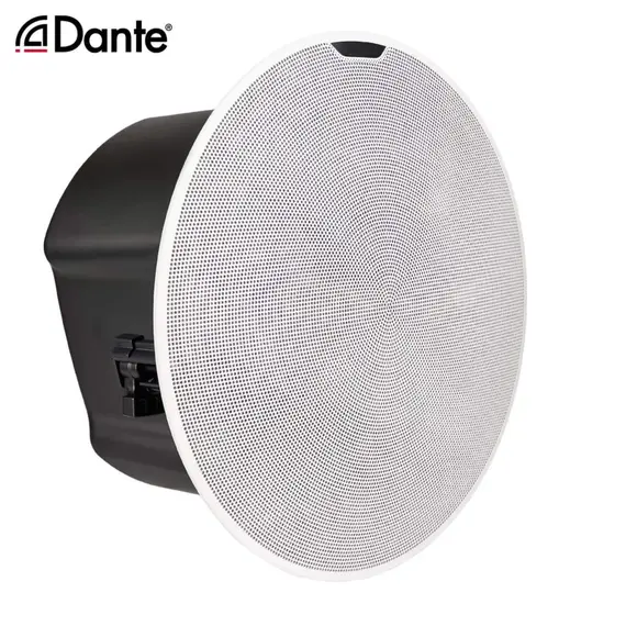 6,5-дюймовый активный потолочный двухполосный громкоговоритель с поддержкой Dante, встроенным усилителем мощности и питанием по PoE.