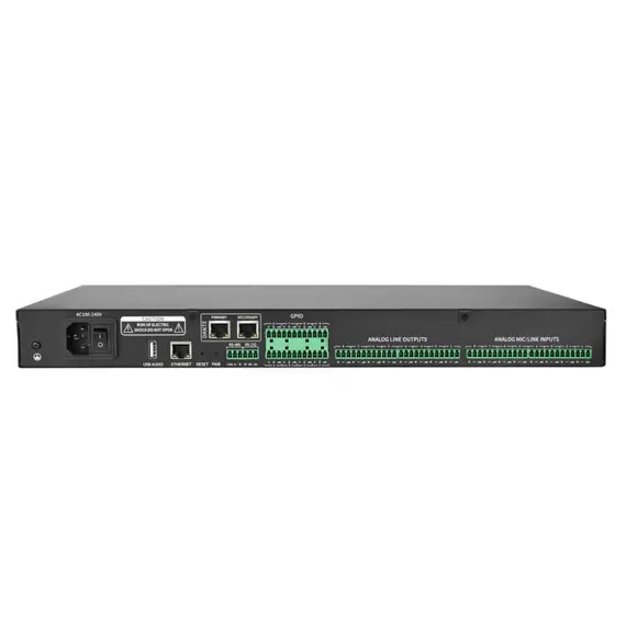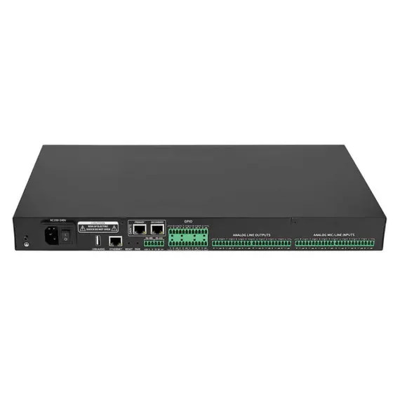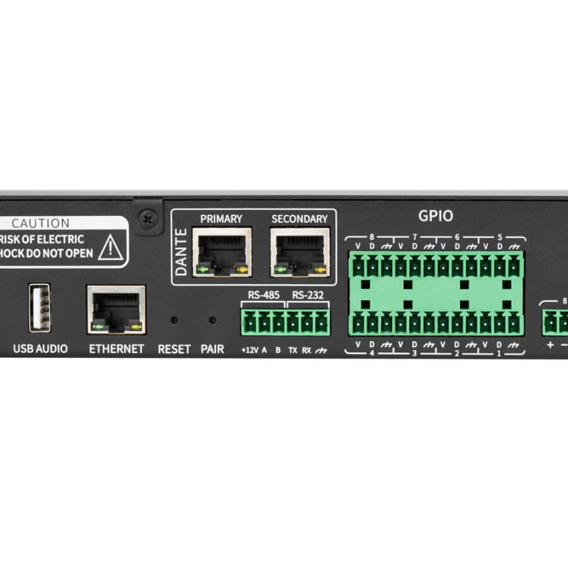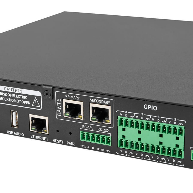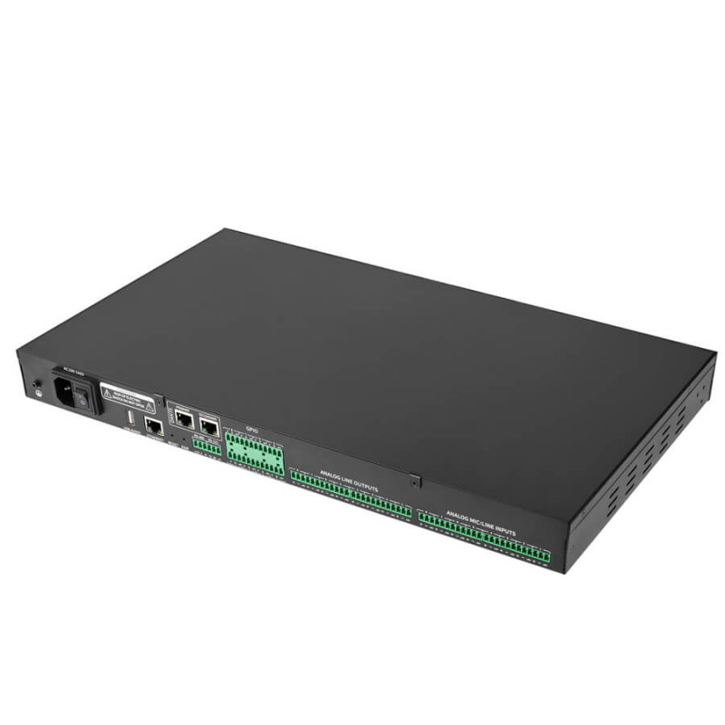 Цифровая аудиоматрица DSP с 8 аналоговыми входами и 8 аналоговыми выходами. Поддерживает каналы Dante 8x8, а также имеет USB-аудиоканал для воспроизведения музыки, записи и видеоконференций. Поддерживает алгоритмы: AEC, AGC, ANS, AFS, ANC, AM. Может использоваться в конференц-залах, классных комнатах, учебных аудиториях для проведения гибридного или дистанционного обучения и т.д.