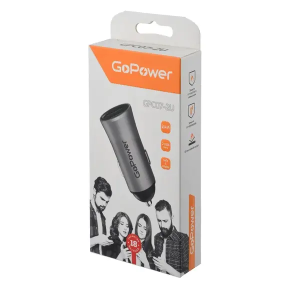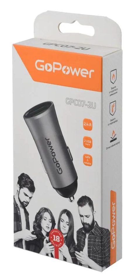 Автомобильное зарядное устройство GOPOWER 12 Вт, сила тока 2.4 A, 2x USB, GPC07U (00-00022627)