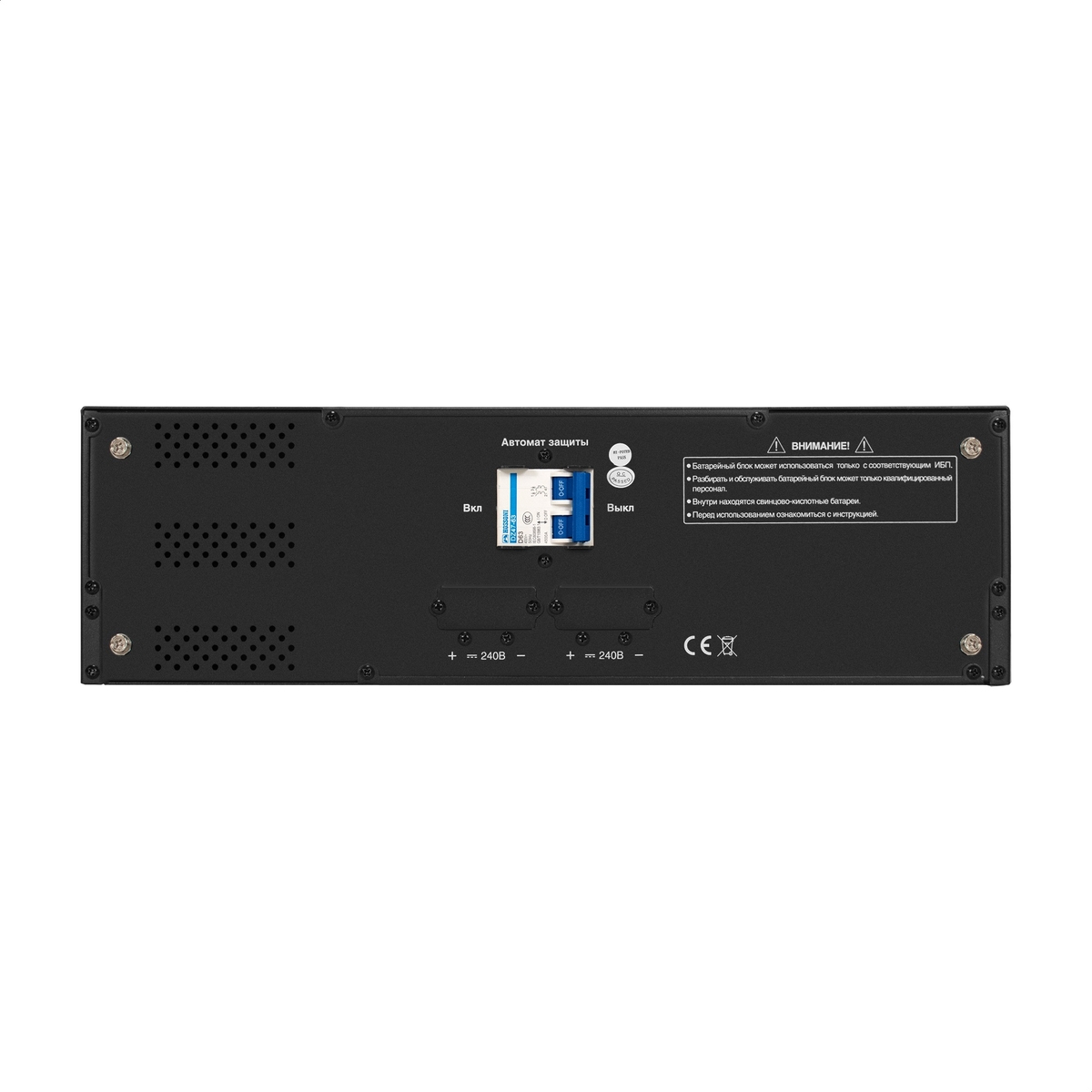 Внешний батарейный блок выпускается в универсальном форм-факторе и предназначен для увеличения времени автономии источника бесперебойного питания. Внутри модуля расположены свинцово-кислотные аккумуляторы напряжением 12В и ёмкостью 7.2 Ач. К одному ИБП можно подключить несколько внешних батарейных модулей параллельно, тем самым обеспечить длительное время резервной работы.