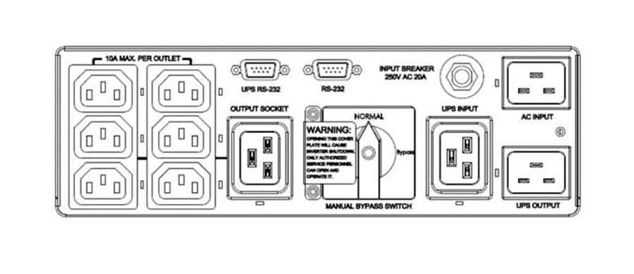 Описание модуль внешнего ручного байпаса для R и RT-Series 2 и 3 kVA, выходы IEC C13x6, C19x1