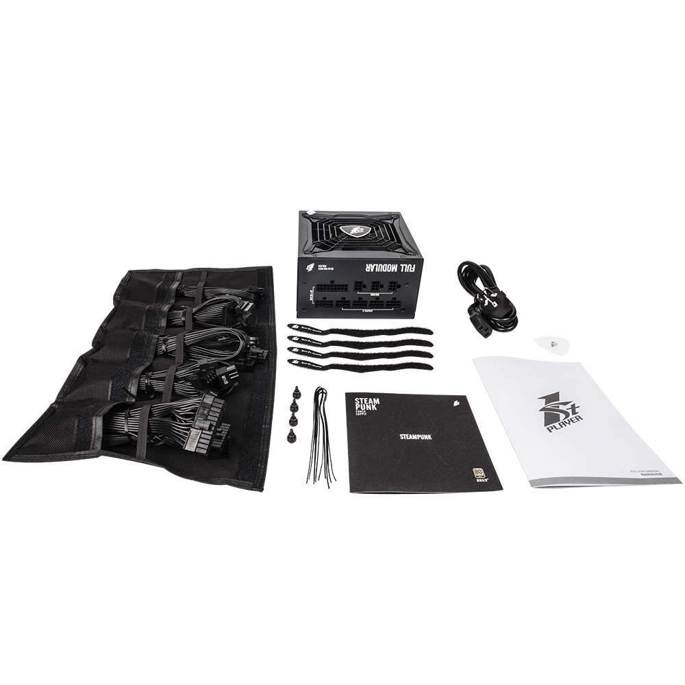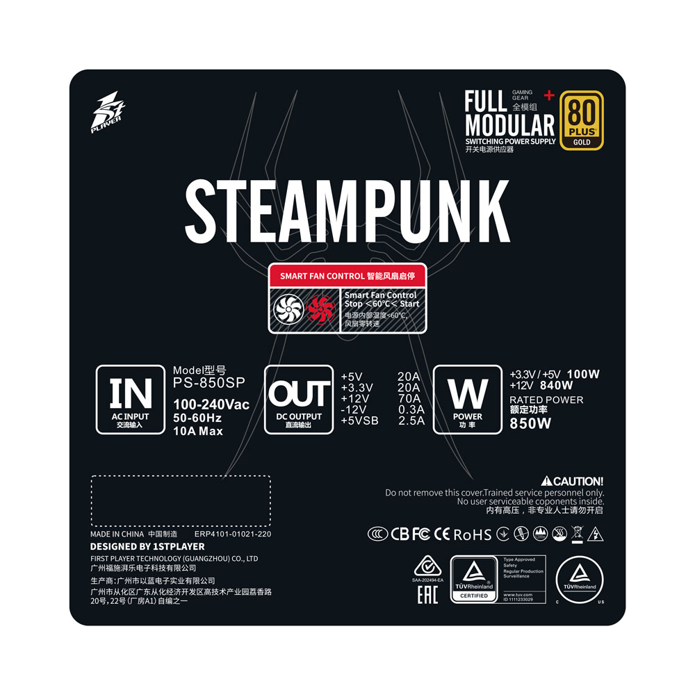 Блок питания 1STPLAYER 850 Вт, STEAMPUNK ATX, активный PFC, 140 мм, 80 PLUS Gold, модульные кабели (PS-850SP)