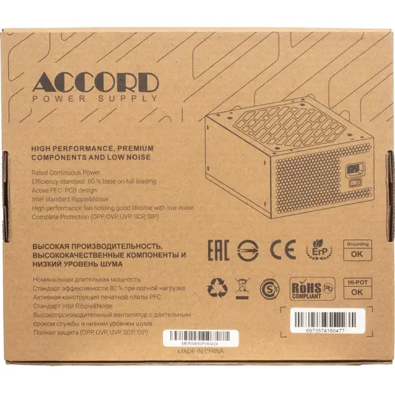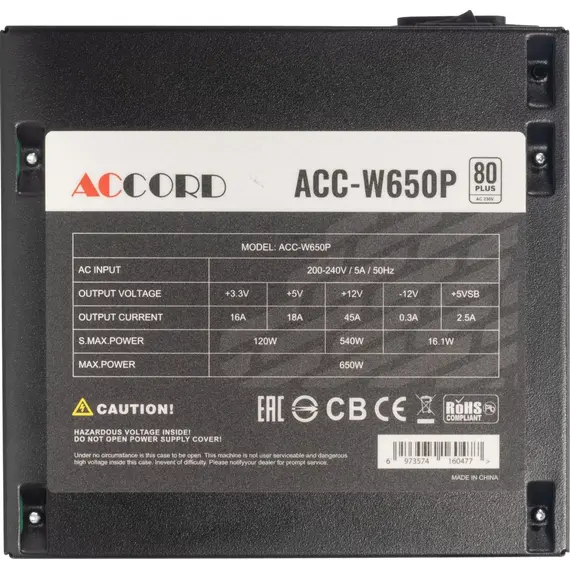 Блок питания ACCORD 650 Вт ATX, активный PFC, 120 мм, 80 PLUS Standard (ACC-W650P)