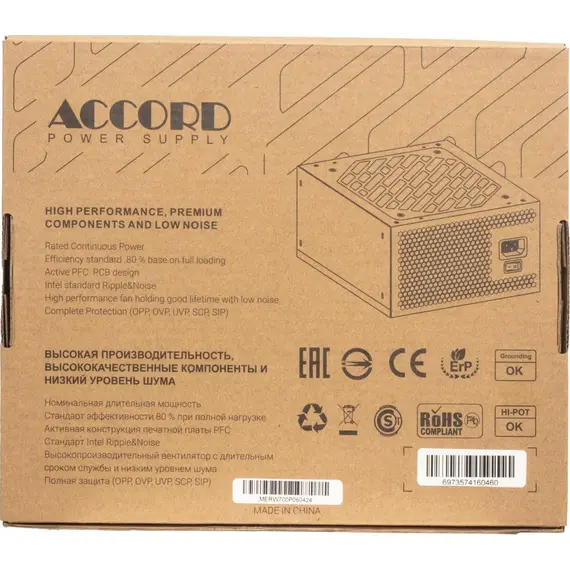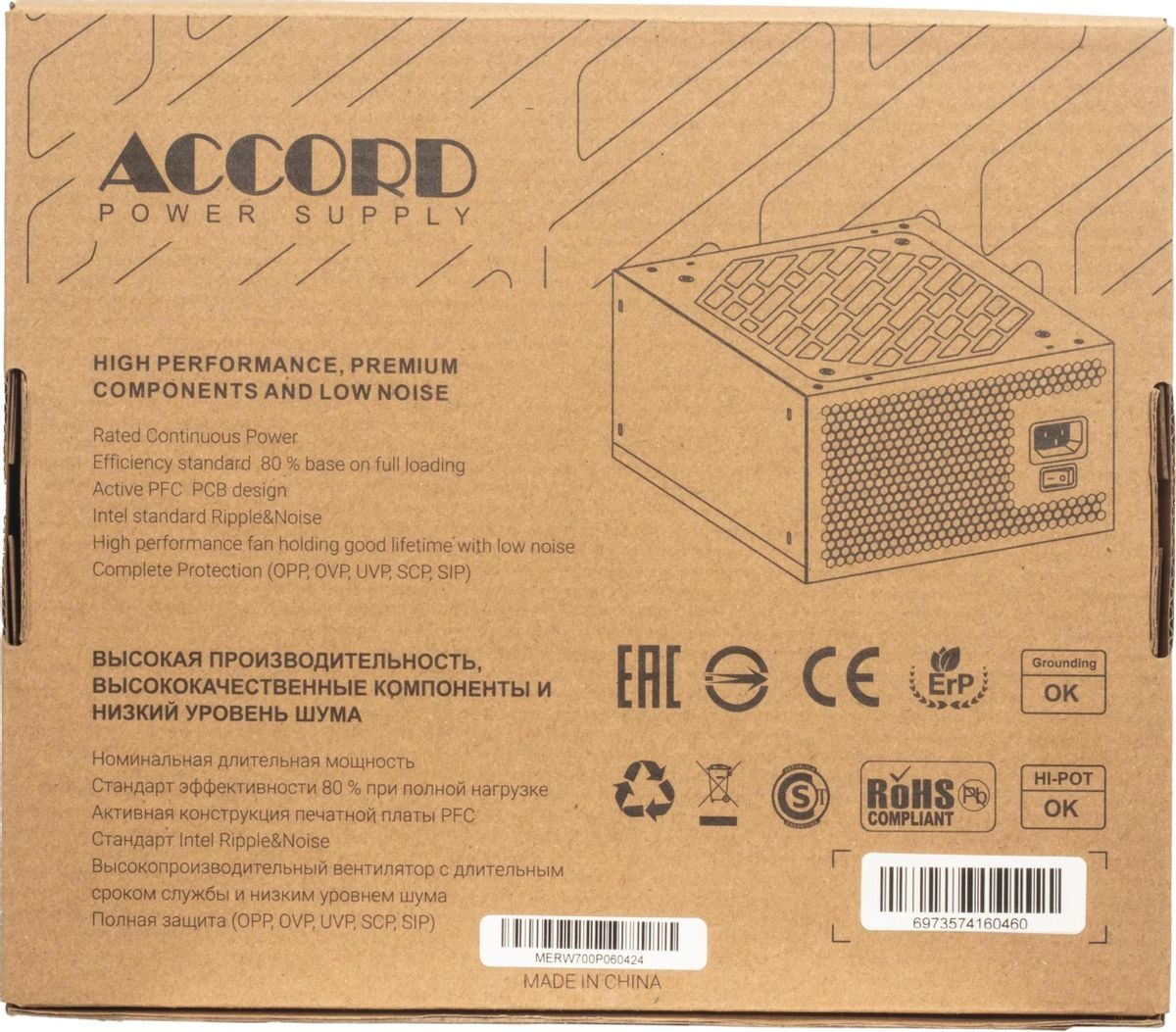 Блок питания ACCORD 700 Вт ATX, активный PFC, 120 мм, 80 PLUS Standard (ACC-W700P)