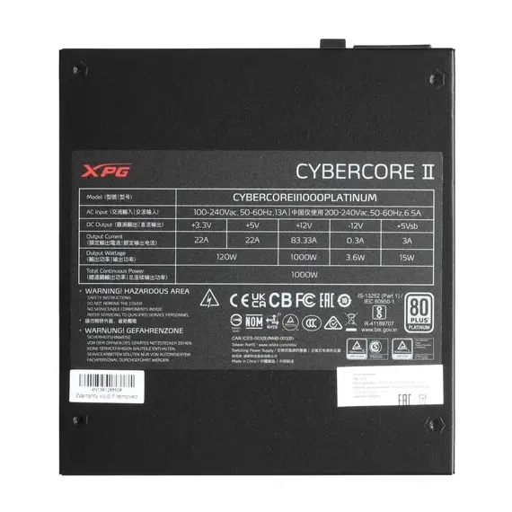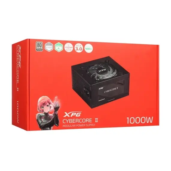 Блок питания XPG 1000 Вт, CYBERCORE II ATX, активный PFC, 120 мм, 80 PLUS Platinum, модульные кабели (CYBERCOREII1000P-BKCEU)