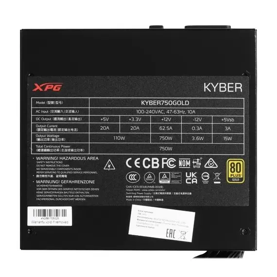 Блок питания XPG 750 Вт, KYBER 750 ATX, активный PFC, 120 мм, 80 PLUS Gold (KYBER750G-BKCEU)