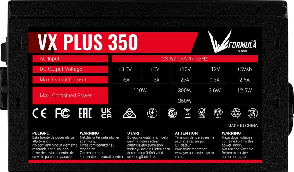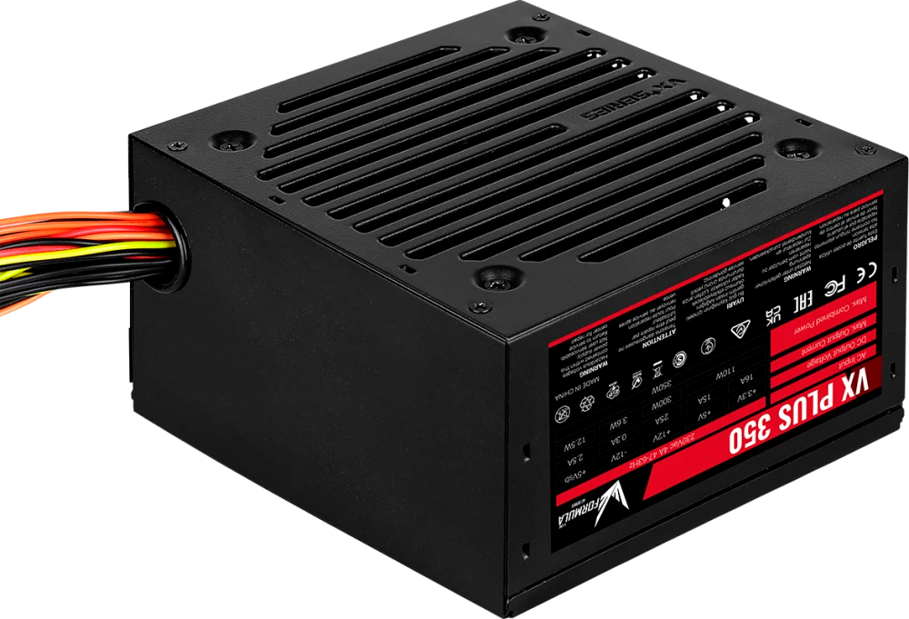 Блок питания Formula VX-350 PLUS мощностью 350 Вт — это немодульная модель для офисных и домашних ПК начального уровня. Ранее серия VX PLUS выпускалась под брендом Aerocool.