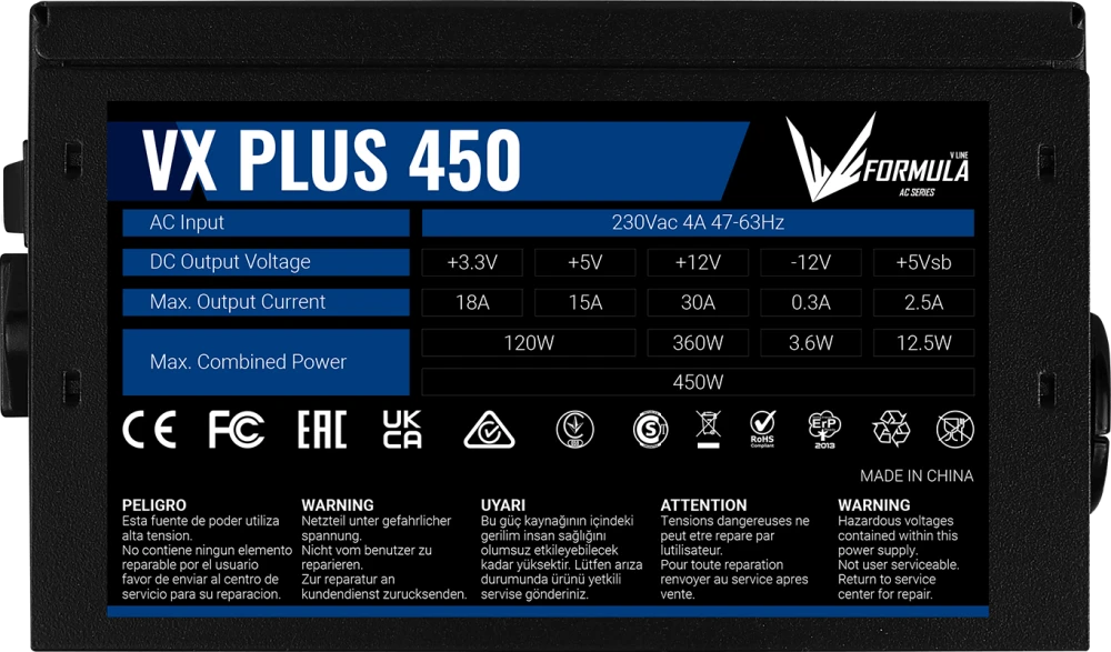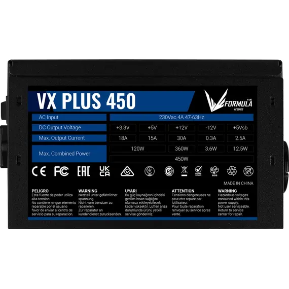 Блок питания FORMULA V LINE 450 Вт ATX, активный PFC, 120 мм, ex Aerocool (VX-450 PLUS)