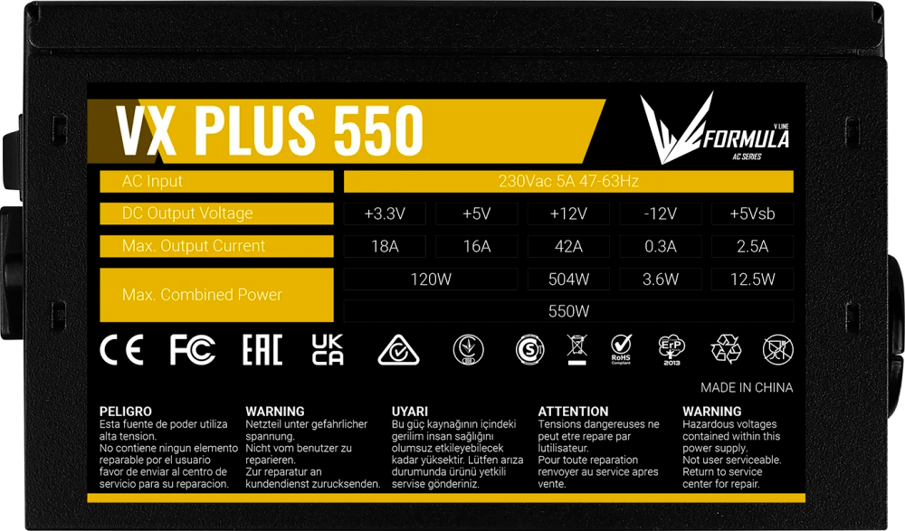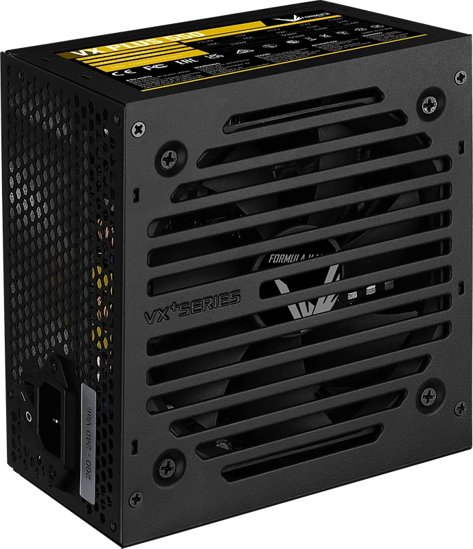 Блок питания Formula VX-550 PLUS мощностью 550 Вт — это немодульная модель для игровых и производительных ПК, ранее выпускавшаяся под брендом Aerocool. Он оснащен активным корректором коэффициента мощности (APFC) для стабильной работы и эффективного использования электроэнергии, а также тихим 120-мм вентилятором.