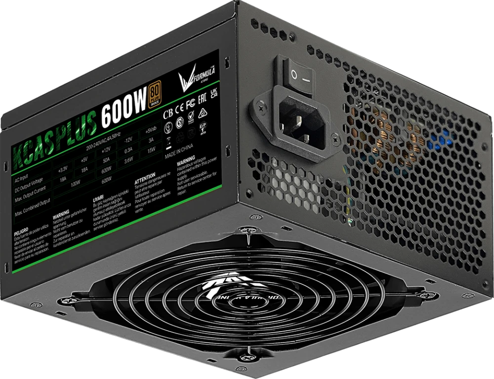 Блок питания Formula KCAS-600W PLUS мощностью 600 Вт — немодульная модель для игровых и высокопроизводительных ПК. Ранее данная серия блоков питания выпускалась под брендом Aerocool.