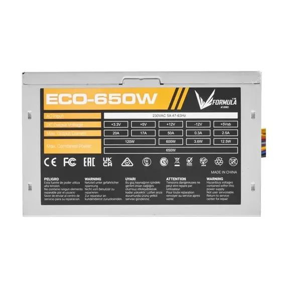 Блок питания FORMULA V LINE 650 Вт ATX, 120 мм, ex Aerocool (ECO-650W)