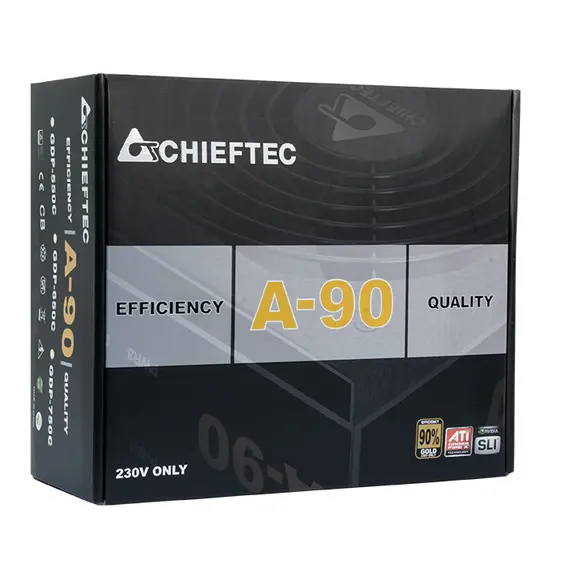 Блок питания CHIEFTEC 750 Вт, A-90 ATX, активный PFC, 140 мм, полумодульные кабели (GDP-750C)