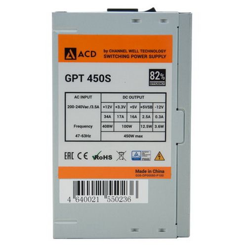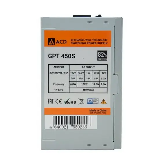 Блок питания ACD GPT450S (GPT-450S) 450W, 82% (max 85%), 120mm FAN , OEM — это устройство, которое используется для обеспечения электроэнергией компьютера или другого электронного оборудования.