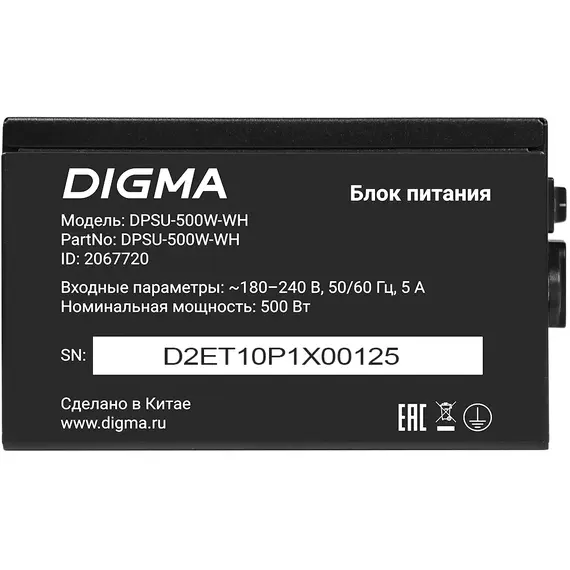 Блок питания DIGMA 500 Вт ATX, активный PFC, 120 мм (DPSU-500W-WH)