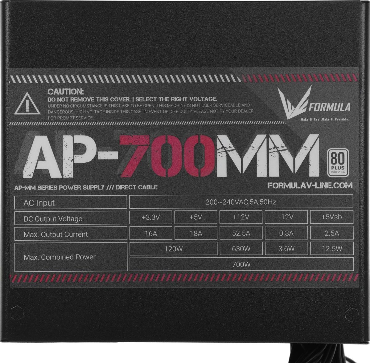 Блок питания FORMULA V LINE 700 Вт ATX, активный PFC, 120 мм, 80 PLUS Standard (AP-700ММ)