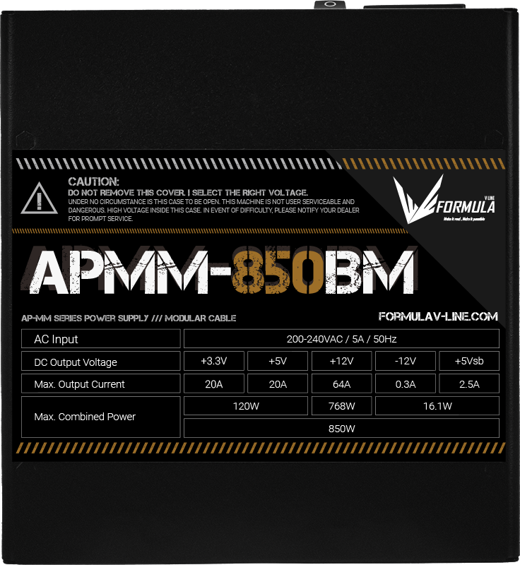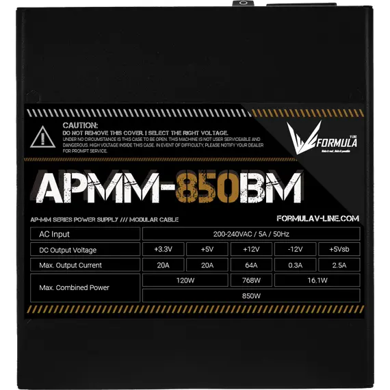 Блок питания FORMULA V LINE 850 Вт ATX, активный PFC, 140 мм, 80 PLUS Bronze, модульные кабели (APMM-850BM)