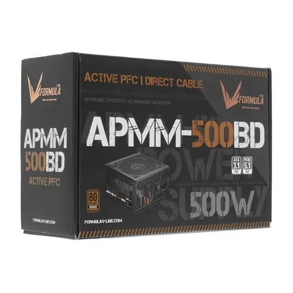 Блок питания FORMULA V LINE 500 Вт ATX, активный PFC, 120 мм, 80 PLUS Bronze (APMM-500BD)