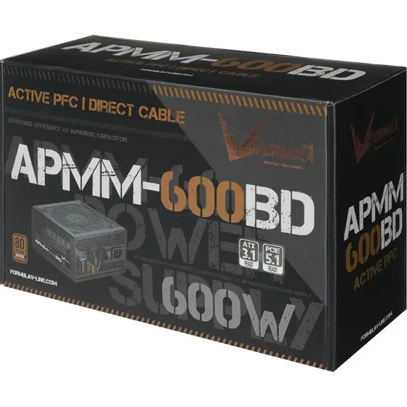 Блок питания FORMULA V LINE 600 Вт ATX, активный PFC, 120 мм, 80 PLUS Bronze (APMM-600BD)