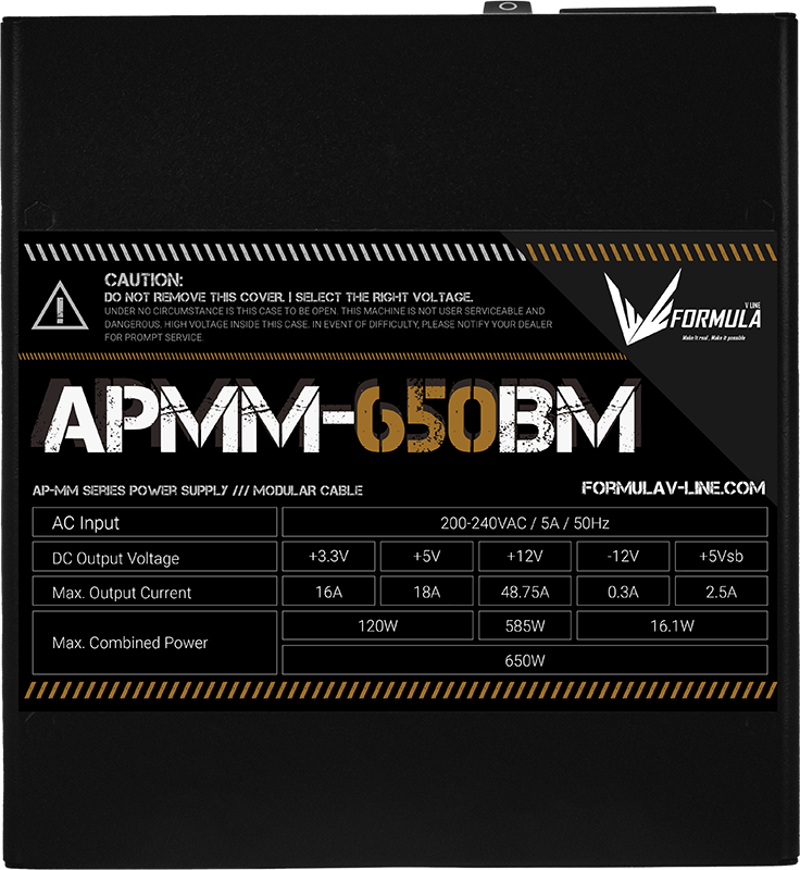 Блок питания FORMULA V LINE 650 Вт ATX, активный PFC, 140 мм, 80 PLUS Bronze, модульные кабели (APMM-650BM)