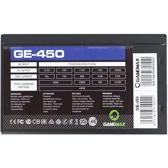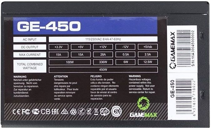 Блок питания GAMEMAX 450 Вт, GE ECO GAMER ATX, 120 мм (GE-450)