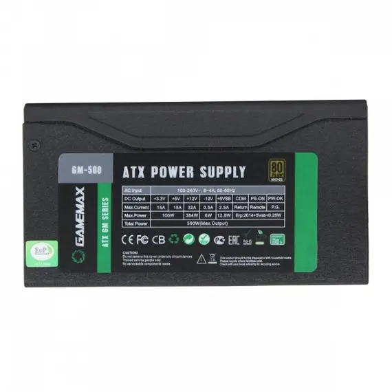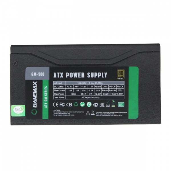 Блок питания GAMEMAX 500 Вт ATX, активный PFC, 139x139 мм, 80 PLUS Standard (GM-500)