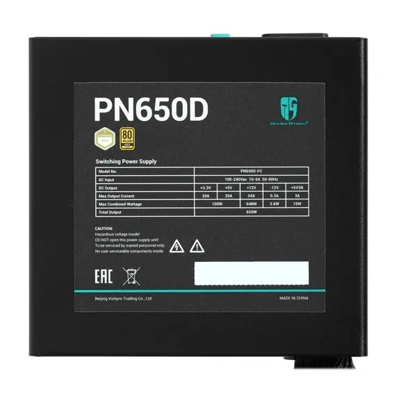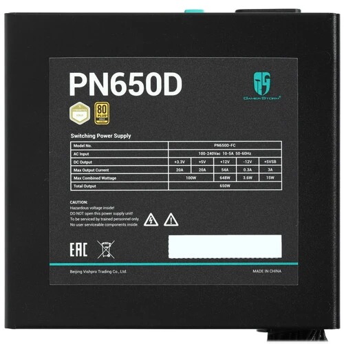 Блок питания GAMERSTORM 650 Вт ATX, активный PFC, 120 мм, 80 PLUS Gold, Cybenetics Gold (GS PN650D)