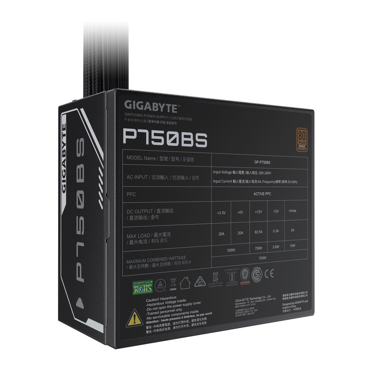 Блок питания ПК Gigabyte P750BS 750W, 80Plus Bronze — это надёжное и эффективное решение для вашего компьютера.