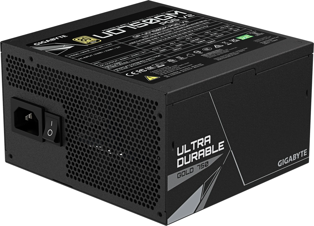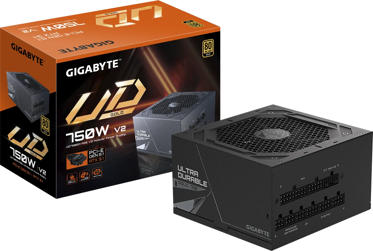 Блок питания GIGABYTE 750 Вт ATX, активный PFC, 120 мм, 80 PLUS Gold, модульные кабели (GP-UD750GM PG5 V2)