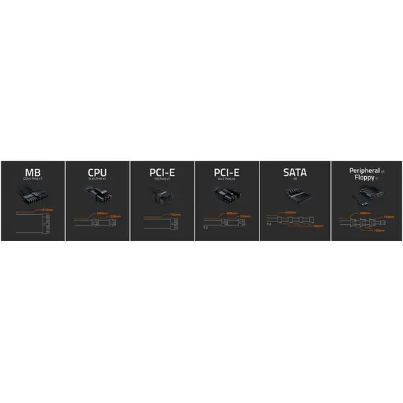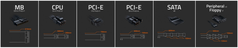 Длина кабеля для видеокарты 1 разъем:     1х700 мм