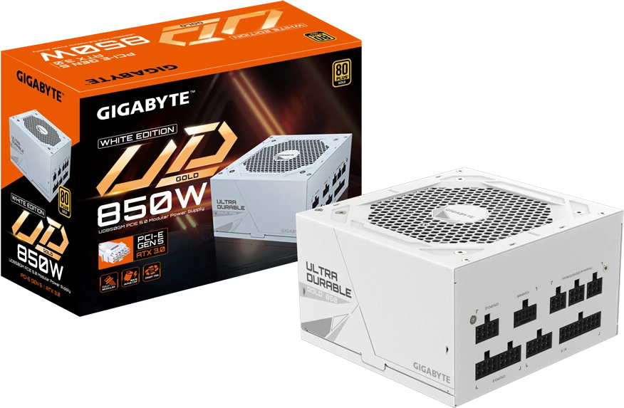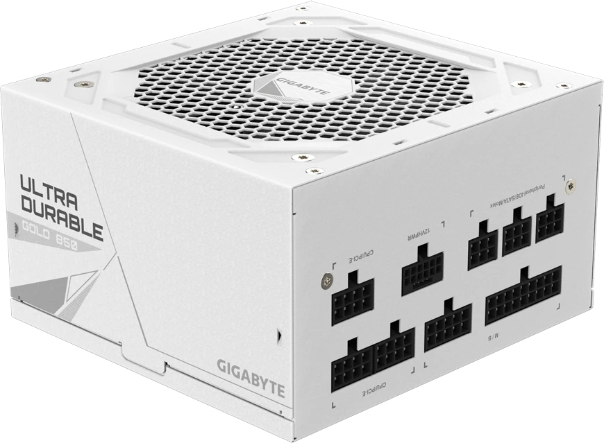 Блок питания GIGABYTE 850 Вт, GP-UD850GM WHITE ATX, активный PFC, 120 мм, 80 PLUS Gold, модульные кабели (GP-UD850GM PG5W)