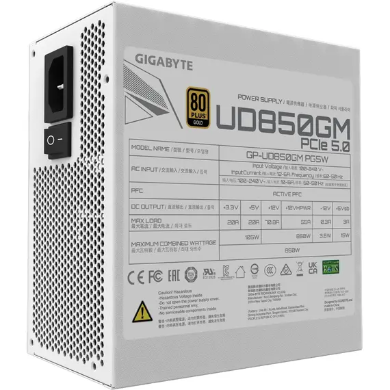 Gigabyte GP-UD850GM PG5W - Этот полностью модульный блок питания Gigabyte мощностью 850 Вт предназначен для высокопроизводительных игровых сборок и рабочих станций. Он соответствует современному стандарту ATX12V 3.0, имеет сертификат эффективности 80 PLUS Gold и оснащен активным корректором коэффициента мощности (PFC).
