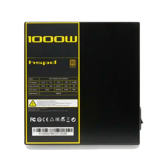 Блок питания HSPD 1000 Вт ATX, активный PFC, 120 мм, 80 PLUS Gold, модульные кабели (HSK-1000GF-BK)