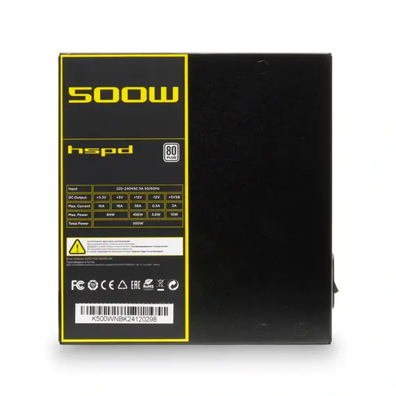 Блок питания HSPD 500 Вт ATX, активный PFC, 120 мм, 80 PLUS Standard (HSK-500WN-BK)