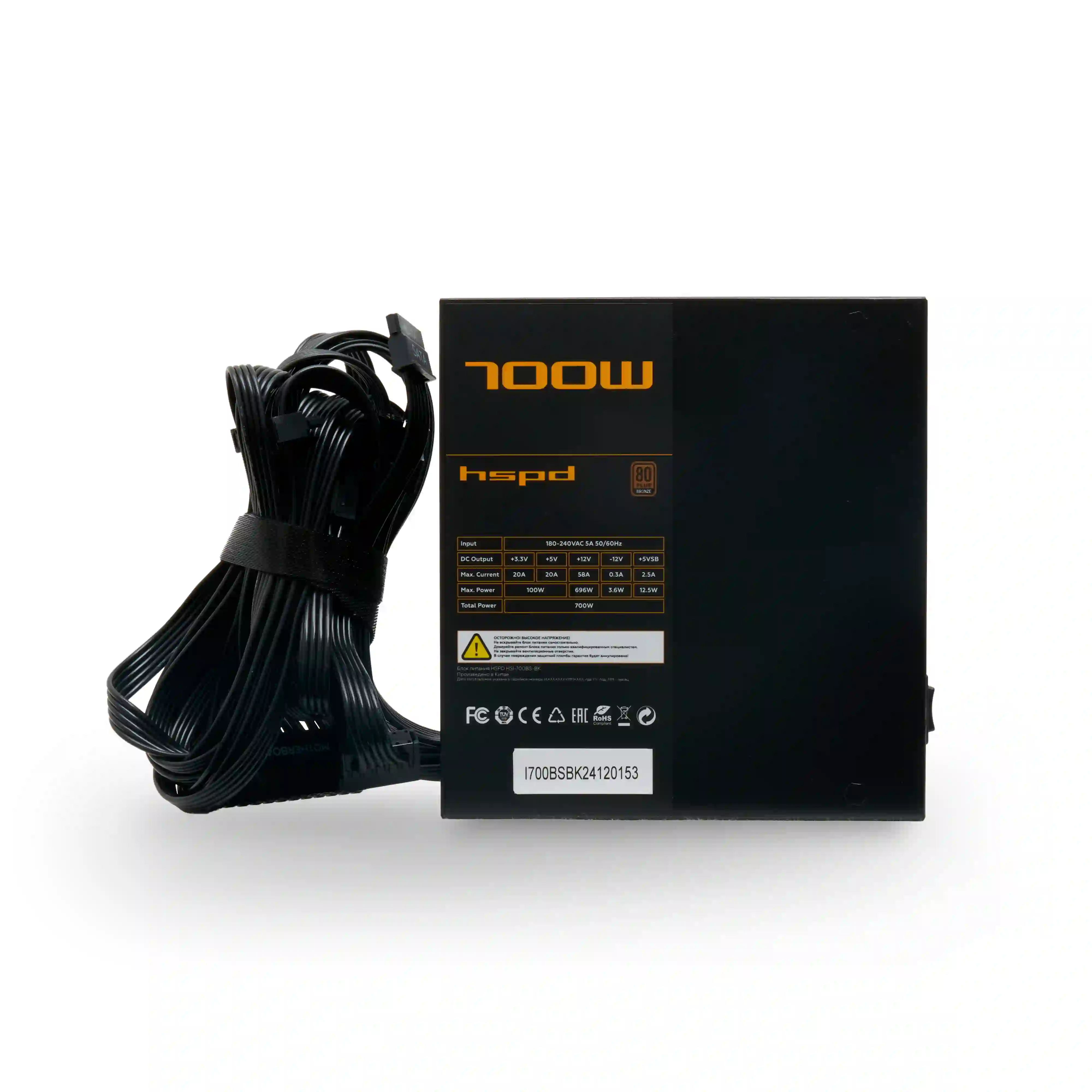 Блок питания HSPD 700 Вт ATX, активный PFC, 120 мм, 80 PLUS Bronze, полумодульные кабели (HSI-700BS-BK)
