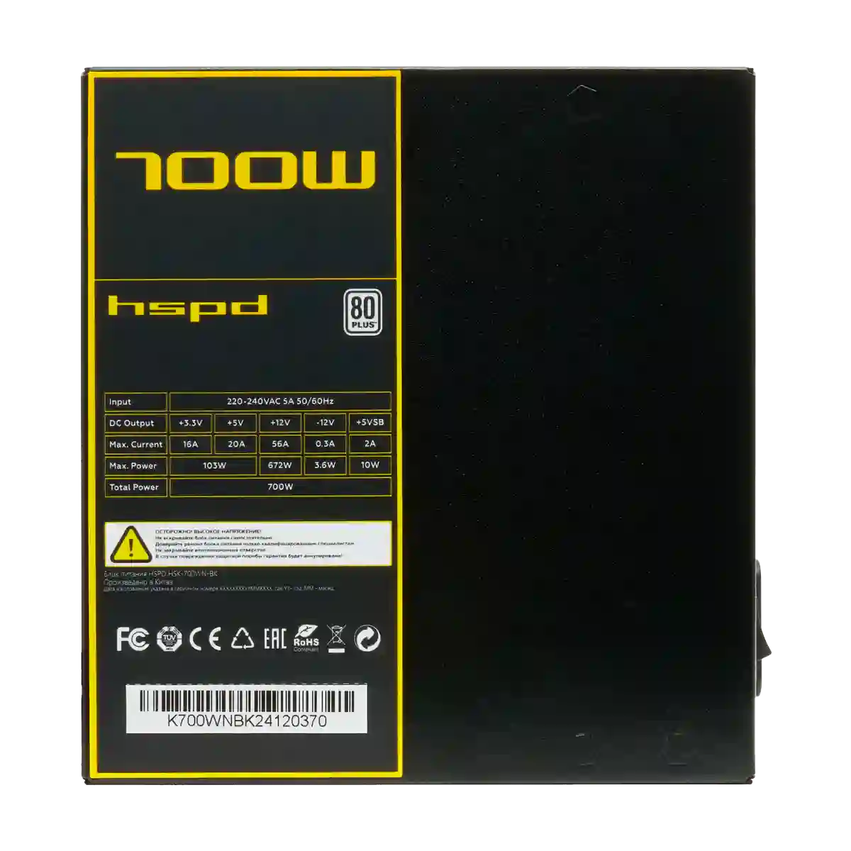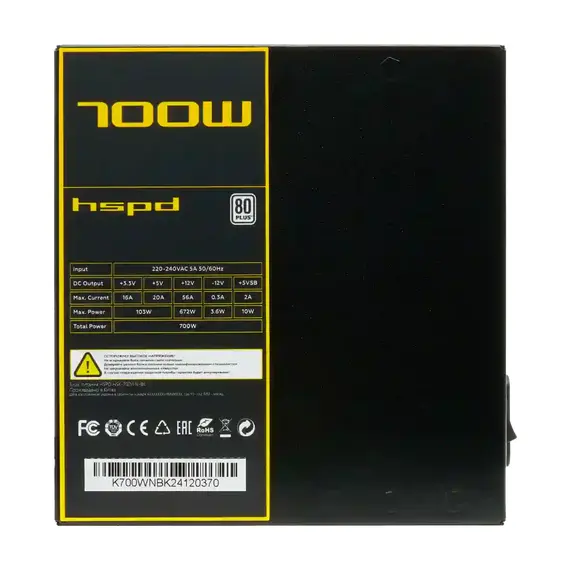 Блок питания HSPD 700 Вт ATX, активный PFC, 120 мм, 80 PLUS Standard (HSK-700WN-BK)