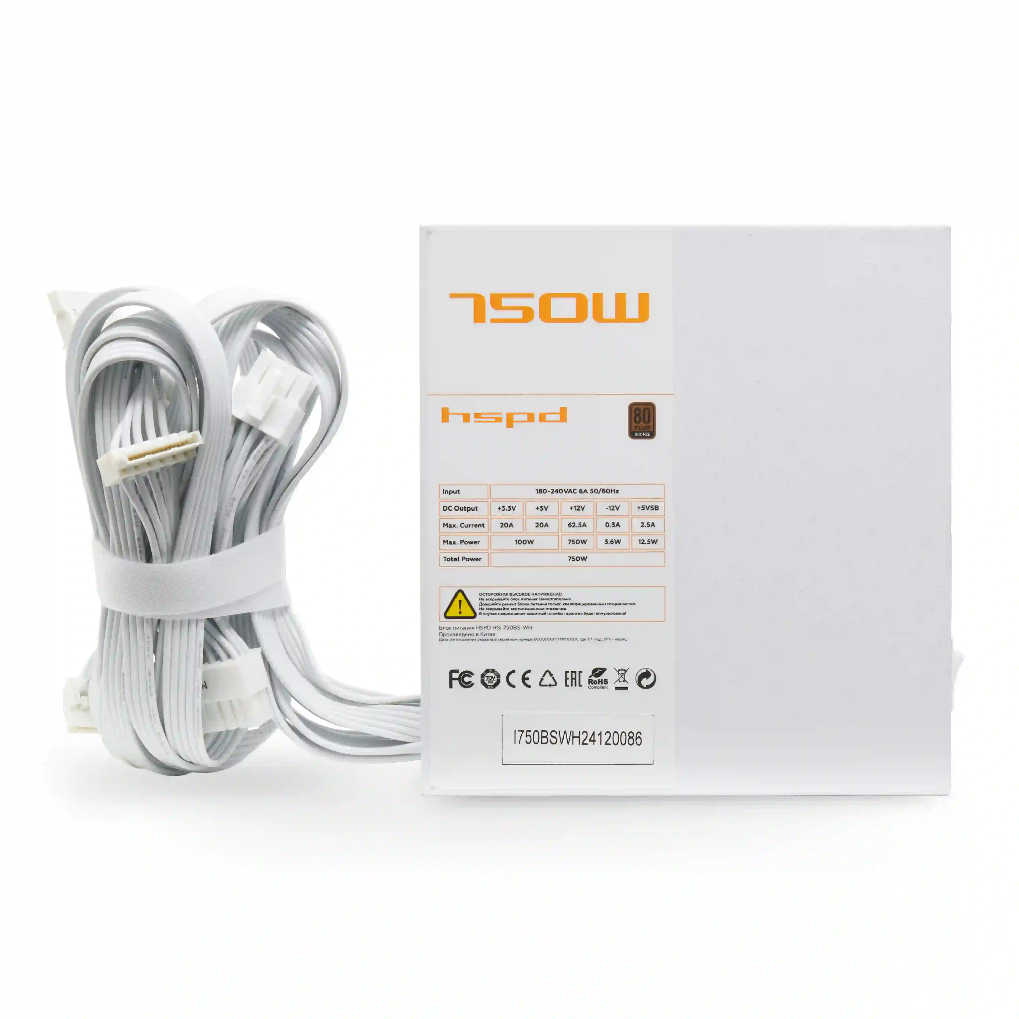 Блок питания HSPD 750 Вт ATX, активный PFC, 120 мм, 80 PLUS Bronze, полумодульные кабели (HSI-750BS-WH)