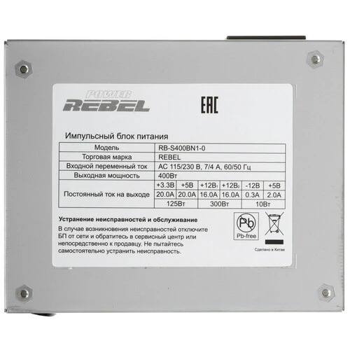 Блок питания INWIN 400 Вт, Power Rebel, RB-S400BN1-0, OEM SFX, пассивный PFC, 80 мм (6132057)