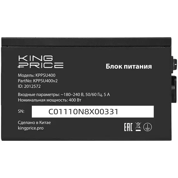 Блок питания KINGPRICE KPPSU400 (KPPSU400V2) — надёжное решение мощностью 400 Вт для офисных и домашних ПК начального уровня. Модель соответствует стандарту ATX12V версии 2.31 и выполнена в чёрном корпусе.