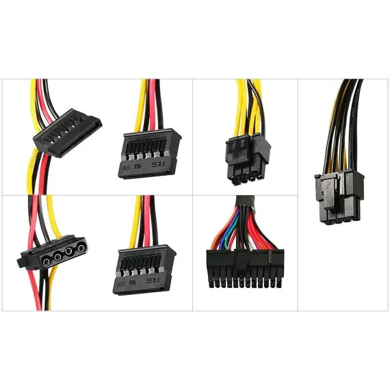 Разъёмы: Включает все необходимые коннекторы, включая 20+4 pin для материнской платы, 4+4 pin для процессора, 6+2 pin для видеокарты, а также разъёмы SATA и Molex.