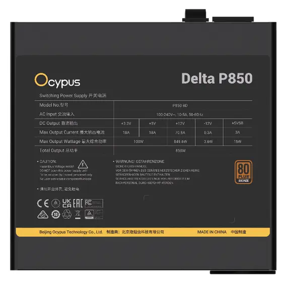 Блок питания PSU Ocypus Delta P850 [P850-BD] 850W — это надёжное и эффективное решение для вашего компьютера.