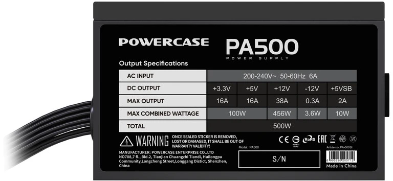 Блок питания POWERCASE 500 Вт, PA500 ATX, активный PFC, 120 мм (PA-500SI)