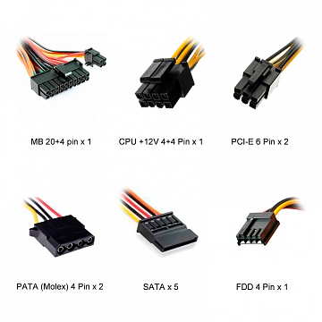 Максимальная нагрузка +3.3V - 24A, +5V - 15A, +12V1 - 18A, +12V2 - 18A, +5VSB - 2.5A, -12V - 0.3A