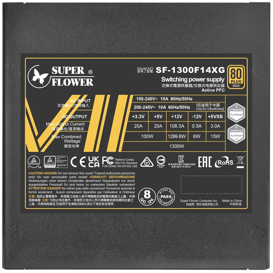 Блок питания SUPER FLOWER 1300 Вт, Leadex VII Gold ATX, активный PFC, 140 мм, 80 PLUS Gold, модульные кабели (SF-1300F14XG)