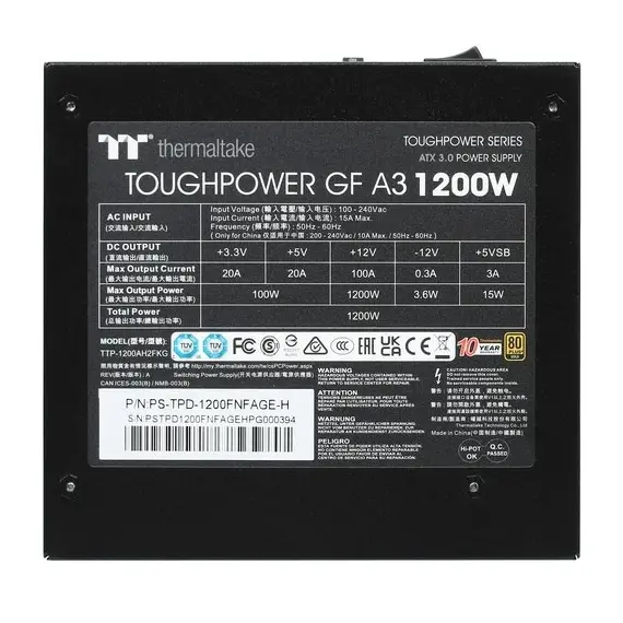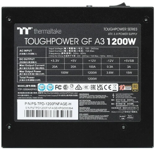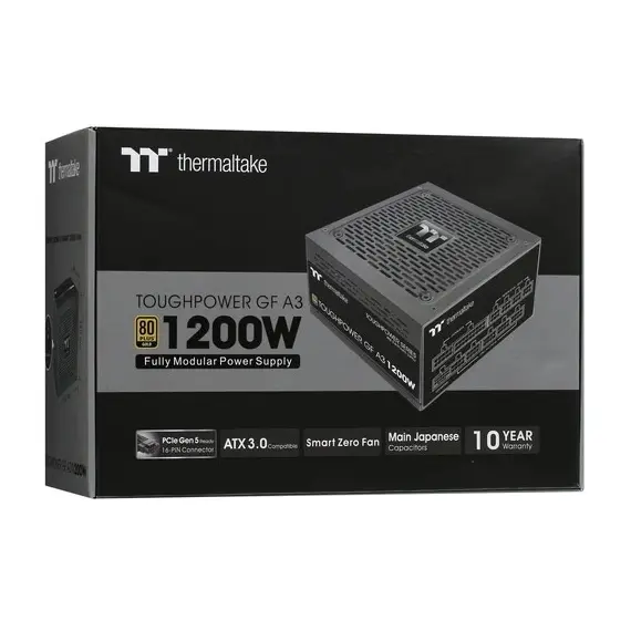 Блок питания THERMALTAKE 1200 Вт, Toughpower GF A3 ATX, активный PFC, 120 мм, 80 PLUS Gold, модульные кабели (PS-TPD-1200FNFAGE-H)