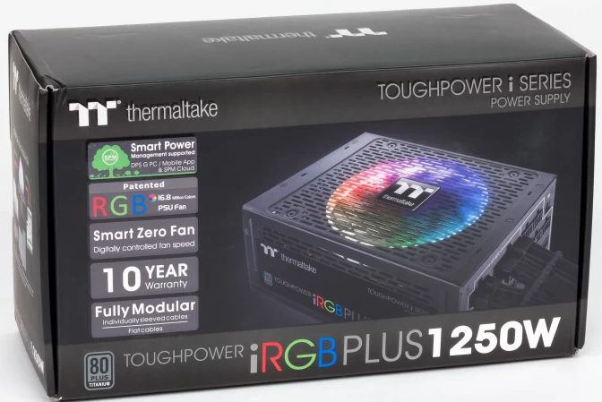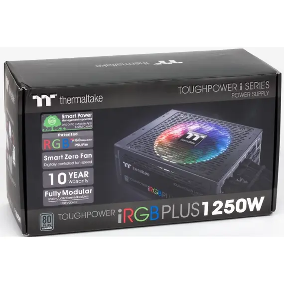 Блок питания THERMALTAKE 1250 Вт, ToughPower iRGB PLUS ATX, активный PFC, 140 мм, 80 PLUS Titanium, модульные кабели, подсветка (PS-TPI-1250F3FDTE-1)