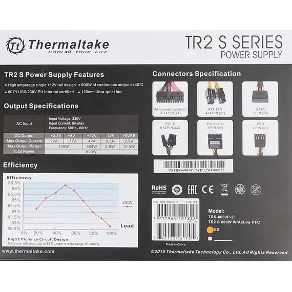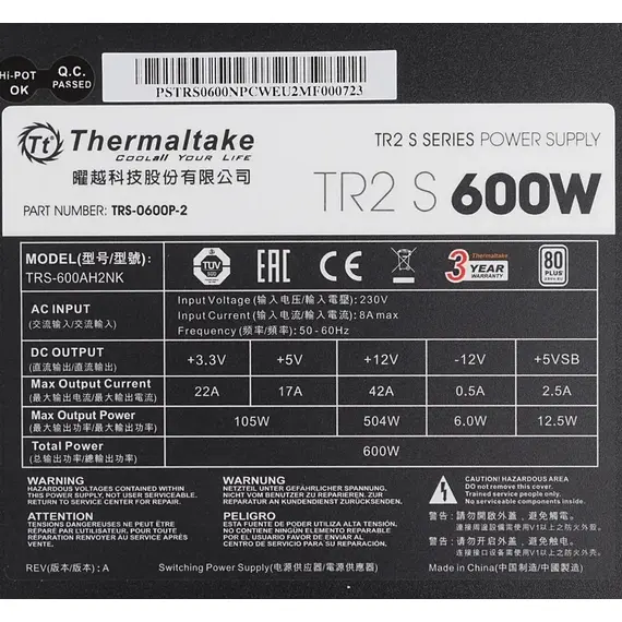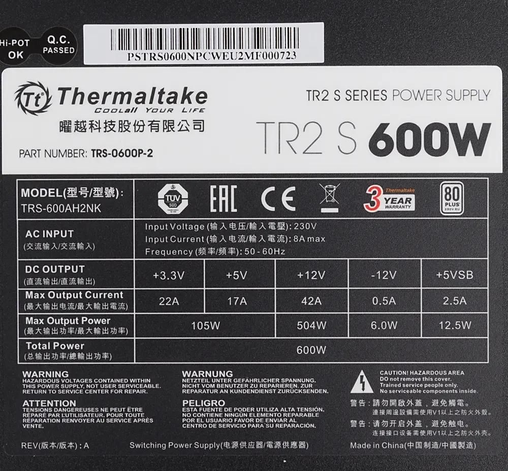 Код вендораPS-TRS-0600NPCWEU-2 БрендTHERMALTAKE