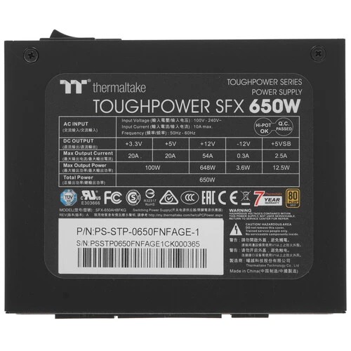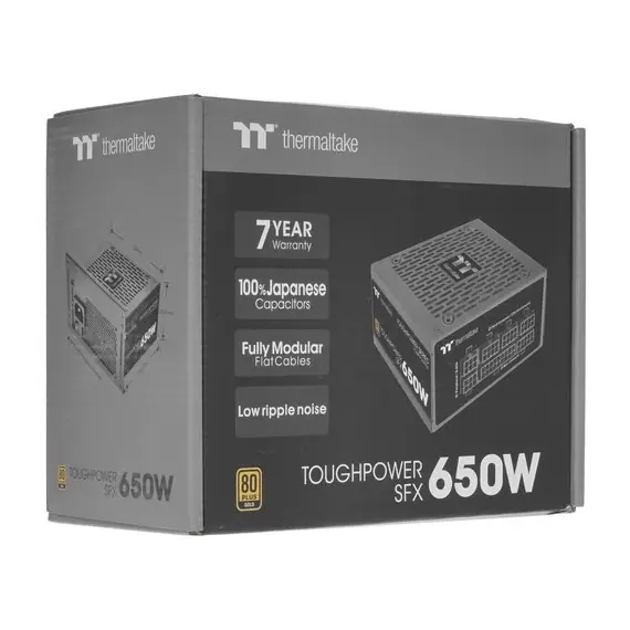 Блок питания THERMALTAKE 650 Вт, ToughPower SFX ATX, активный PFC, 92 мм, 80 PLUS Gold, модульные кабели (PS-STP-0650FNFAGE-1)